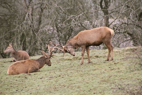 There is a herd of red deer here, including two stags. These bad boys did lock horns in a very lackadaisical manner, but couldn't really be bothered to fight. After all, there were loads of those silly gossipy hinds to go round, and they were quite comfortable with each other. In fact, they were coming round to prefer a bit of sensible male company.