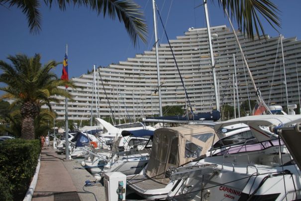 These are the upmarket apartments at Cagnes….ship shaped from a distance and sprouting many a tree from the balconies. They are linked to marinas, see below: