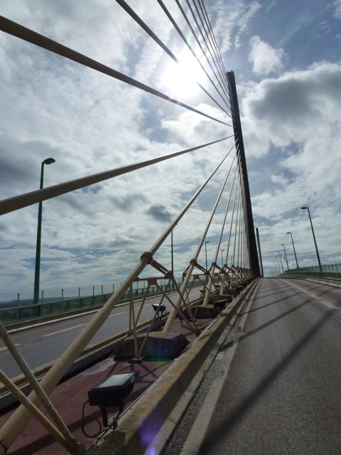 This is the Pont de Brotonne, over the Seine, and turning left a couple of km further on takes you to an Aire at La Mailleraye-sur-Seine….an amazing spot where you park about 10 feet from the banks and watch the barges and other watercraft chugging up and down to and from Rouen.