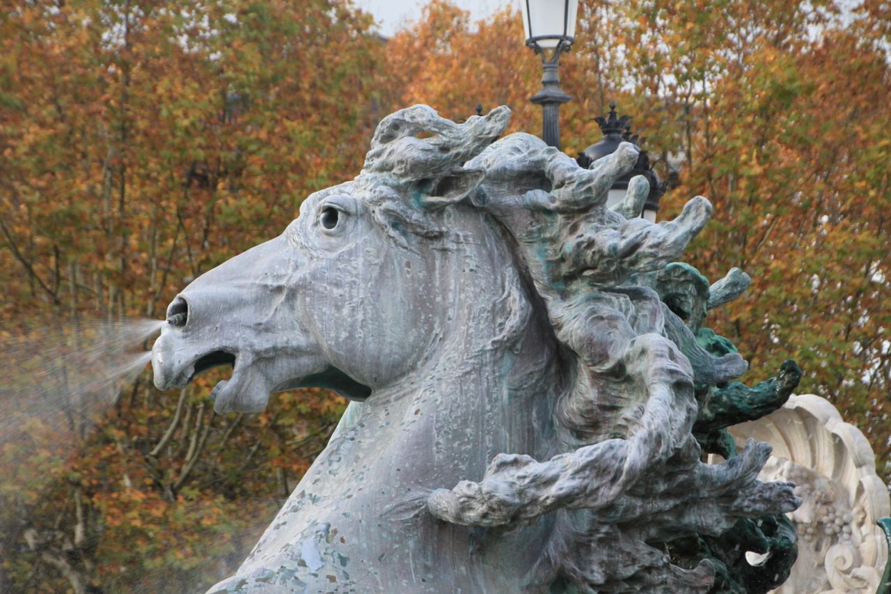 There is a fantastic collection of metal figures in fountains around the base of the monument.Due to be melted down for arms in the last war, they were saved by being hidden in a barn in the Medoc by the resistance, who dismantled and removed them the night before they were going to be purloined by the Nazis.
