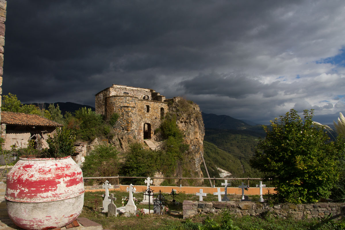 There is a short walk up into the hills behind the campsite to this old castle in the village of Castane (population : 6).