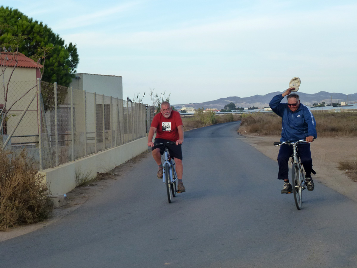 We had a “Menu del Dia” at Antonio’s restaurant, a short cycle ride from the campsite, on Wednesday. Antonio is the guy on my right…his wife cooked the most amazing paella….worth travelling to the South of Spain for that alone. Each dish is carried to the table by Antonio with an accompanying “Mmmmmm”…and whatever the spanish for delicious is. And he’s right.
