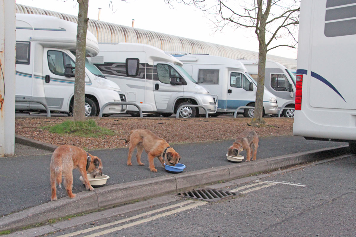 The dogs had breakfast in front of the dealers and were then taken for a long walk around Langstone Harbour.