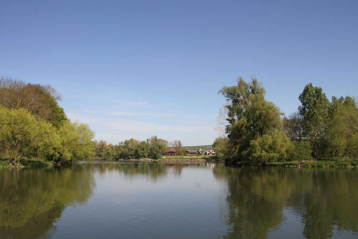 We parked overlooking the Eure which joins the Seine about 100 metres from the site; the confluence is seen in the distance here. There are good riverside walks in both directions.
