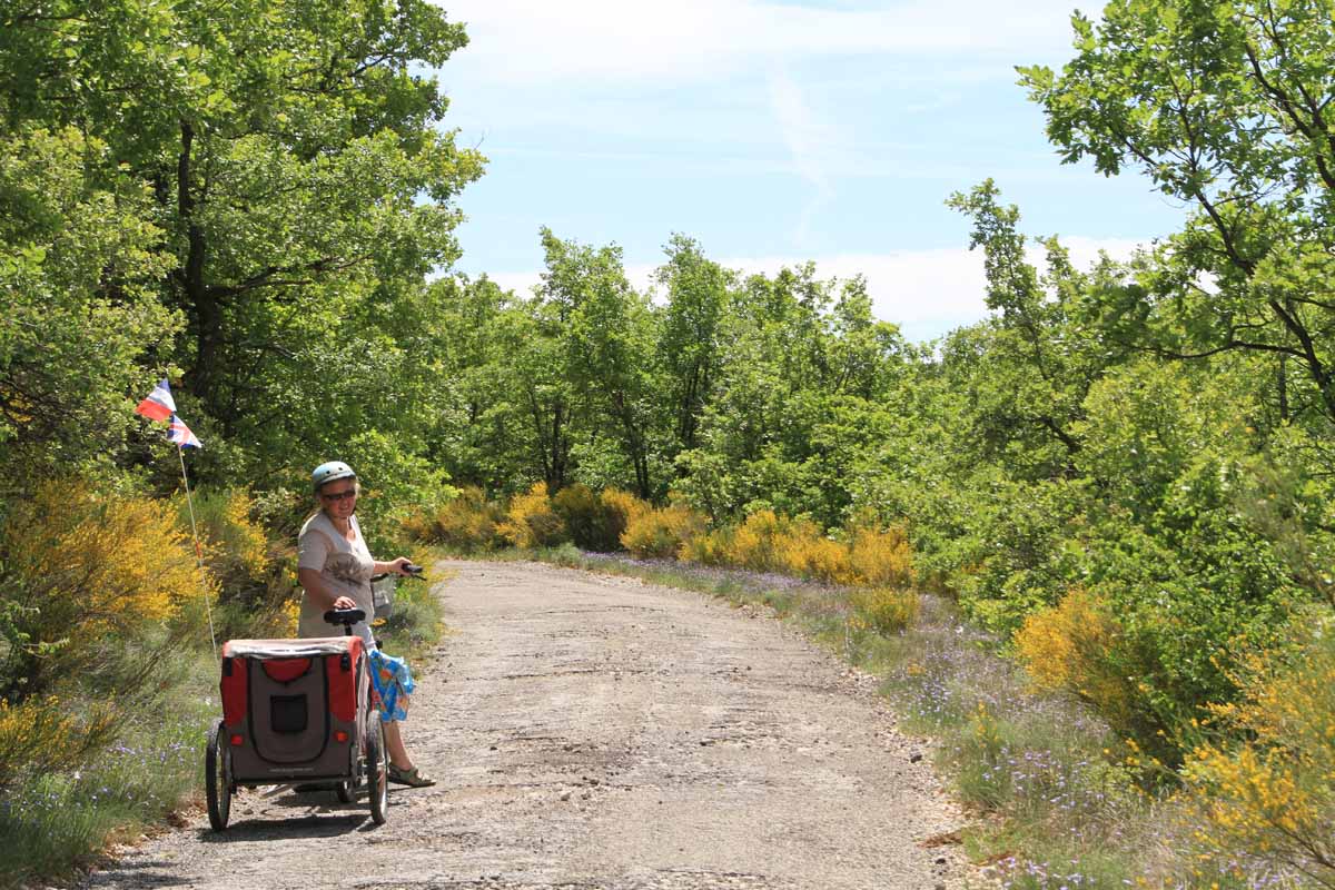 Banon is famous for its goats cheese, served wrapped in a chestnut leaf. If you taste it in May , apparently, at the time of the annual cheese festival, you will never want to leave. However Banon was about 20km, with a few hills en route, it was a hot day and we didn’t quite get there. We ended up on this deserted provencal lane.