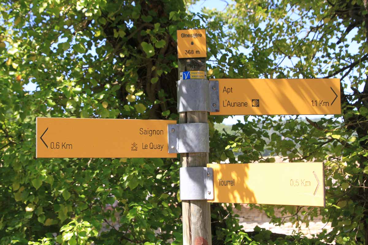 The GR 92 footpath is a well defined track leading up to Saignon from the road about 300 metres down from the campsite. We stopped at Saignon….carry on walking and you end up in Spain. The GR stands for Grande Randonée. (Big Walk?).