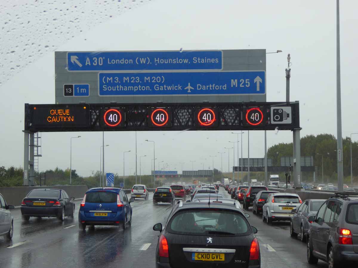 We set off for a longish trip down the M6/M25/M23 to Brighton for the first leg on Saturday. The M25 was a tiny bit congested. Luckily there were speed camera warnings on the overhead gantries; nose to tail in the fast lane we were in danger of hitting 4 mph on the straights.