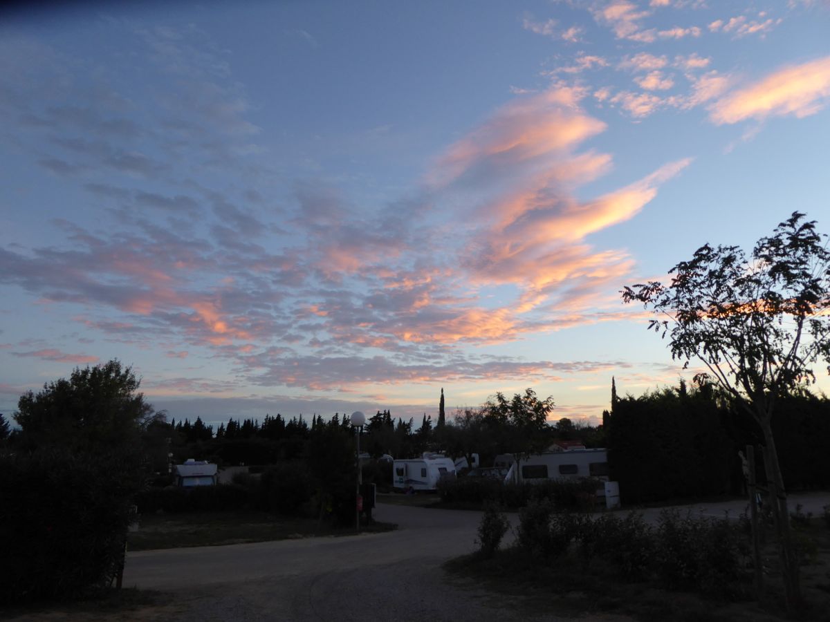 We are at Camping La Nautique (N 43.147591 E 3.004611), a campsite on the shore of Lake Bages-Sigean. This is about 4 miles from Narbonne. The lake extends for about 10 miles through a national park to the Mediterranean; La Nautique used to be the port which served Narbonne. The campsite is a little unusual in that each pitch has its own water supply, electricity supply and private shower and wc. All for the standard ACSI rate.