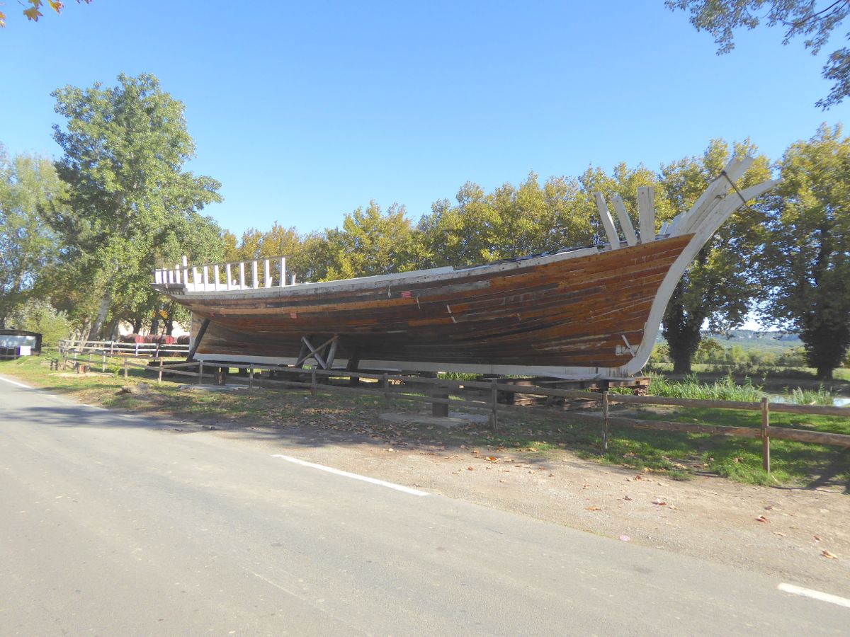 The road to the canal from camping La Nautique takes you past this old barge which is being restored.
