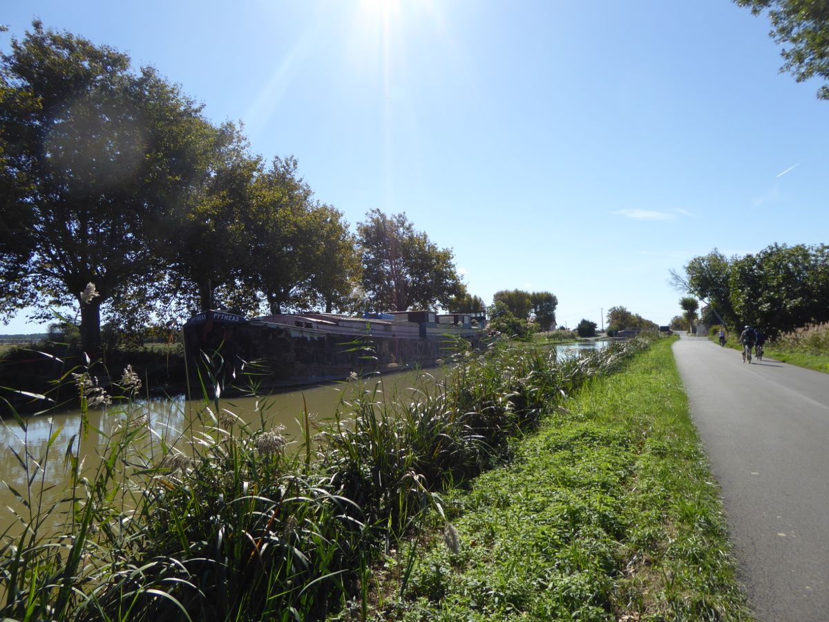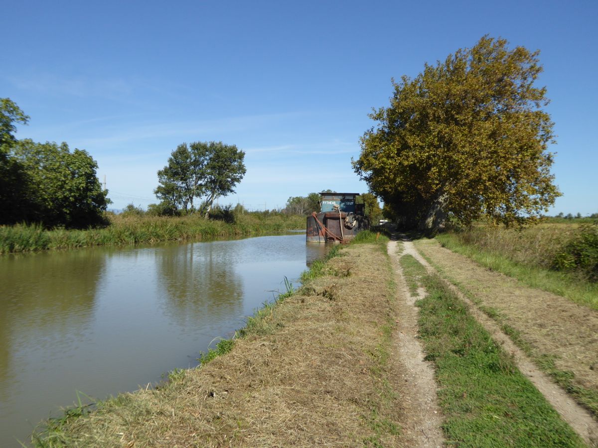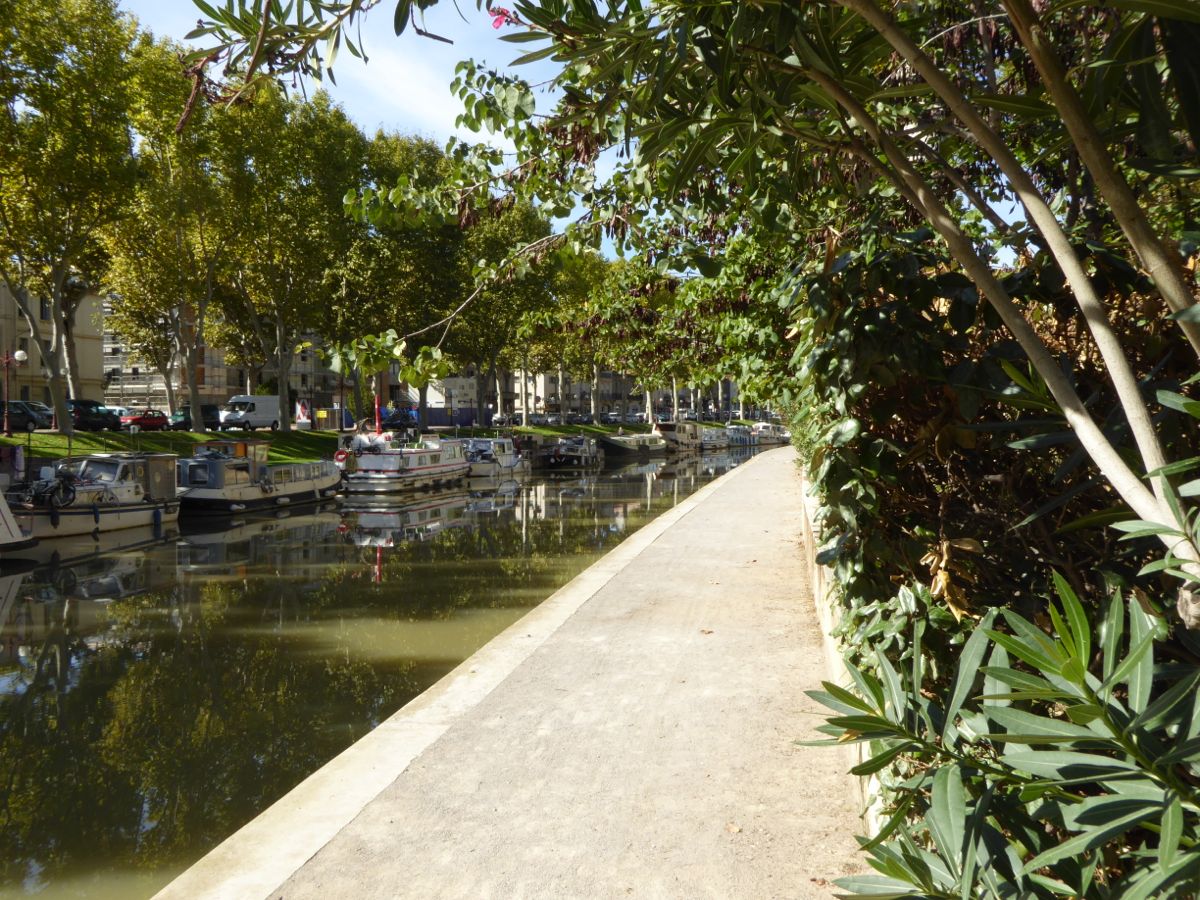 There is a good cycle ride in to the centre of Narbonne alongside the Canal de la Robine. This is the link canal from the River Aude to the Canal du Midi (the canal linking the mediterranean to the Garonne river at Bordeaux and the Atlantic).