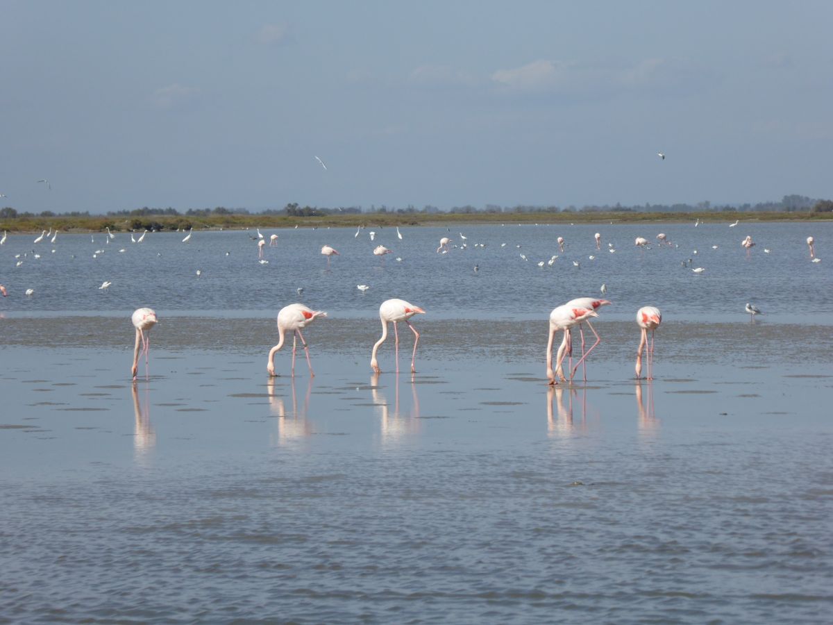 There are a lot of flamingos who spend most of the day with their heads underwater guddling for shrimps or other muddy delicacies. Each to their own, or ‘chacun à son gôut’ as they say in this neck of the woods.
