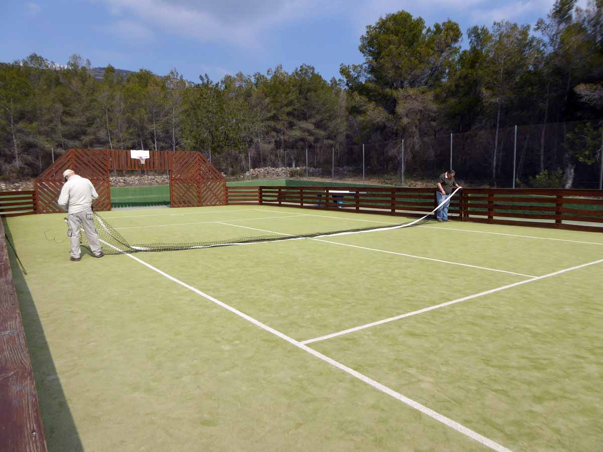 Having visited the cut price sports shop at Benicarlo (two rackets, two balls…€17) we decided to christen the rackets on the astroturfed tennis court here at Ribamar.