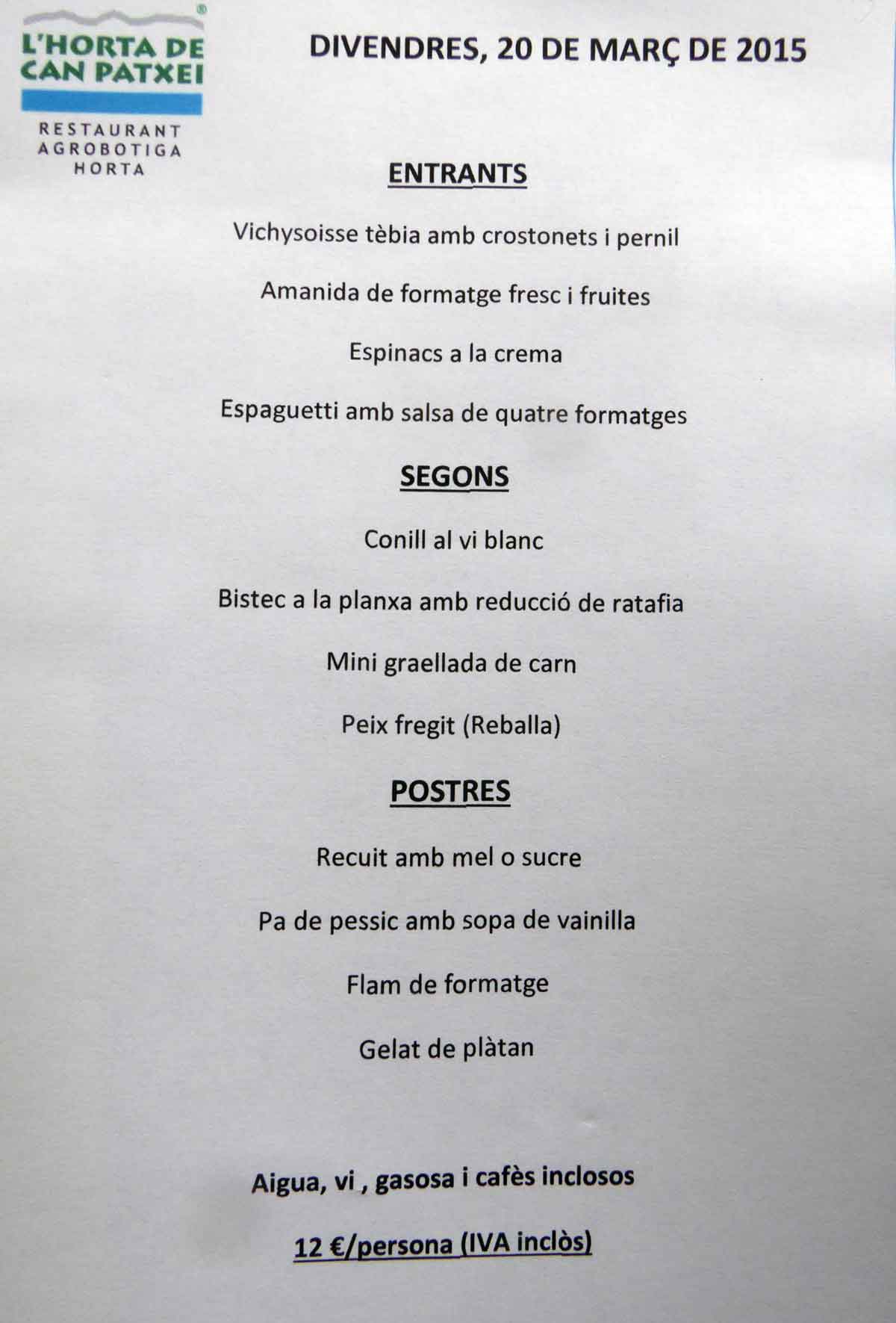 There is a restaurant …. L’Horta de Can Patxei….in an apple orchard next to Gualta which we have visited before…open 1 -3.30 every day except Monday…Perfecto.