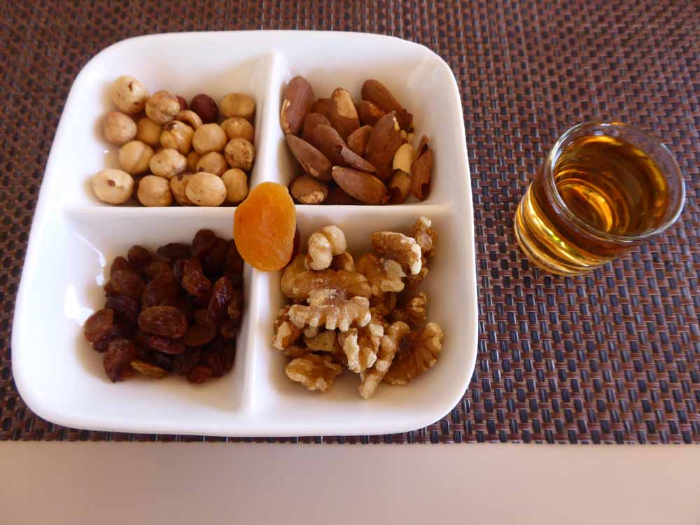 Nuts and dessert wine..a catalan pudding dish.