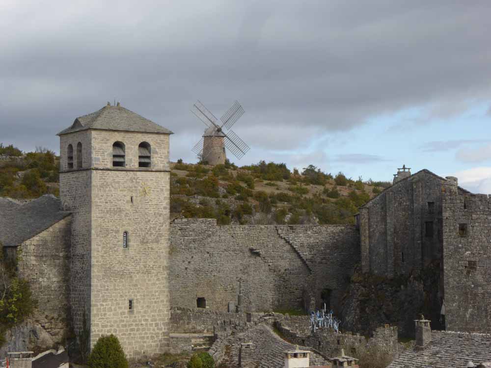 The Knights Templars settled here in about 1200 and built a fortress on the solid rock here; on the Larzac plateau of the Aveyron. The village is unusual in that it is the only village in Europe, apparently, without a Spring. All the roofs, gutters and gently sloping streets were designed to funnel rainwater into the ‘Conque’ a large natural subterranean rock pool behind the church.