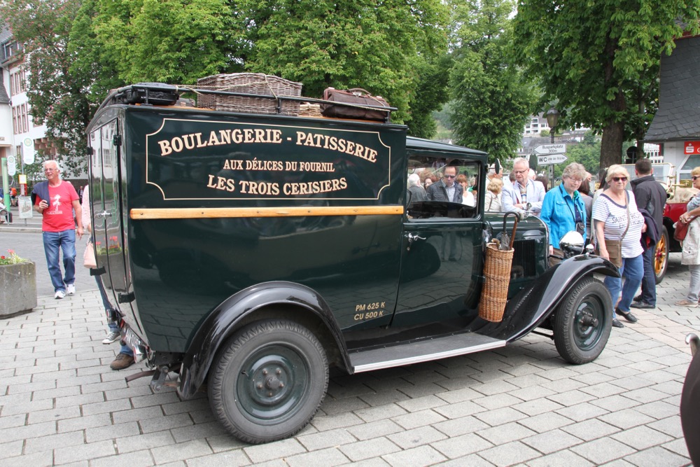 After looking at a display of vintage cars behind the tourist office we headed back a few streets into Cochem for Schnitzel and ice-cream (served separately) with a nice dry Riesling.