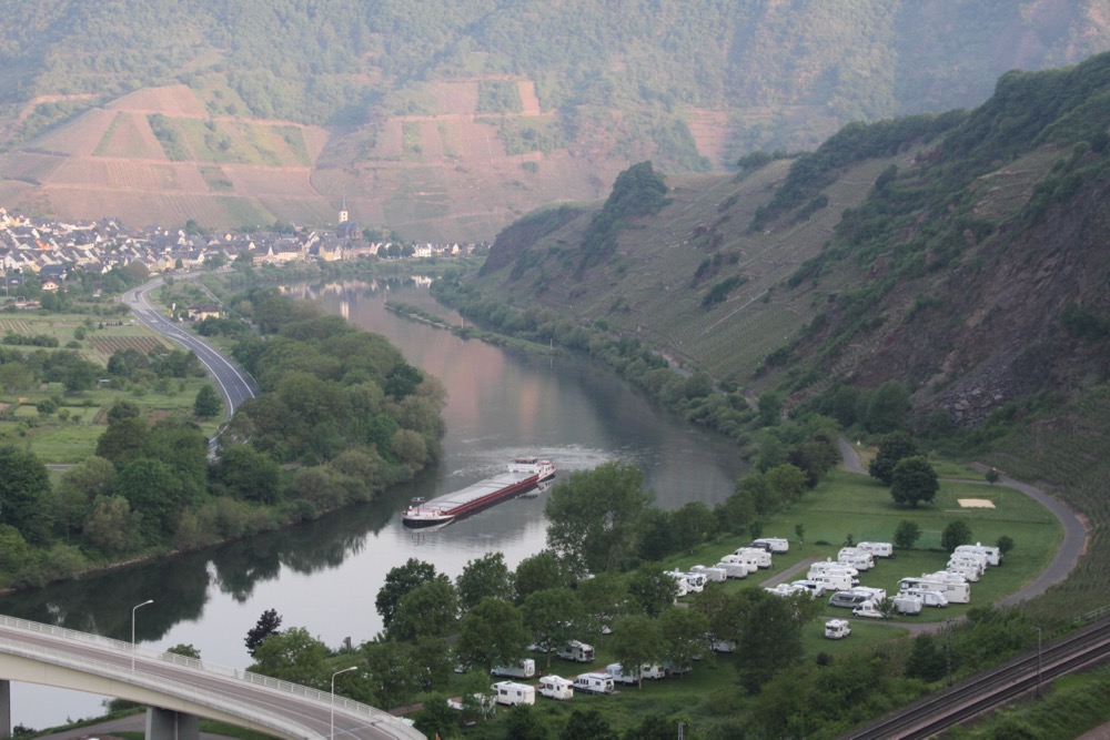 There are good views looking down on to the Moselle and you can watch the massive barges entering and leaving the lock over the river from Neef.