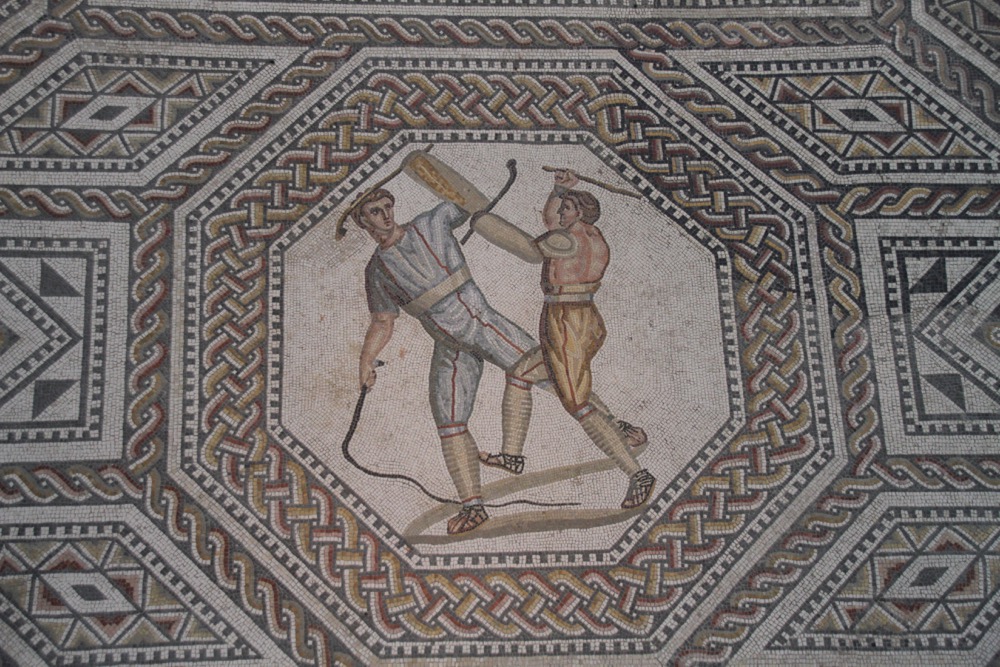 The mosaic artist has produced intricate patterns from innumerable tiny tiles…a very early pixellated image.