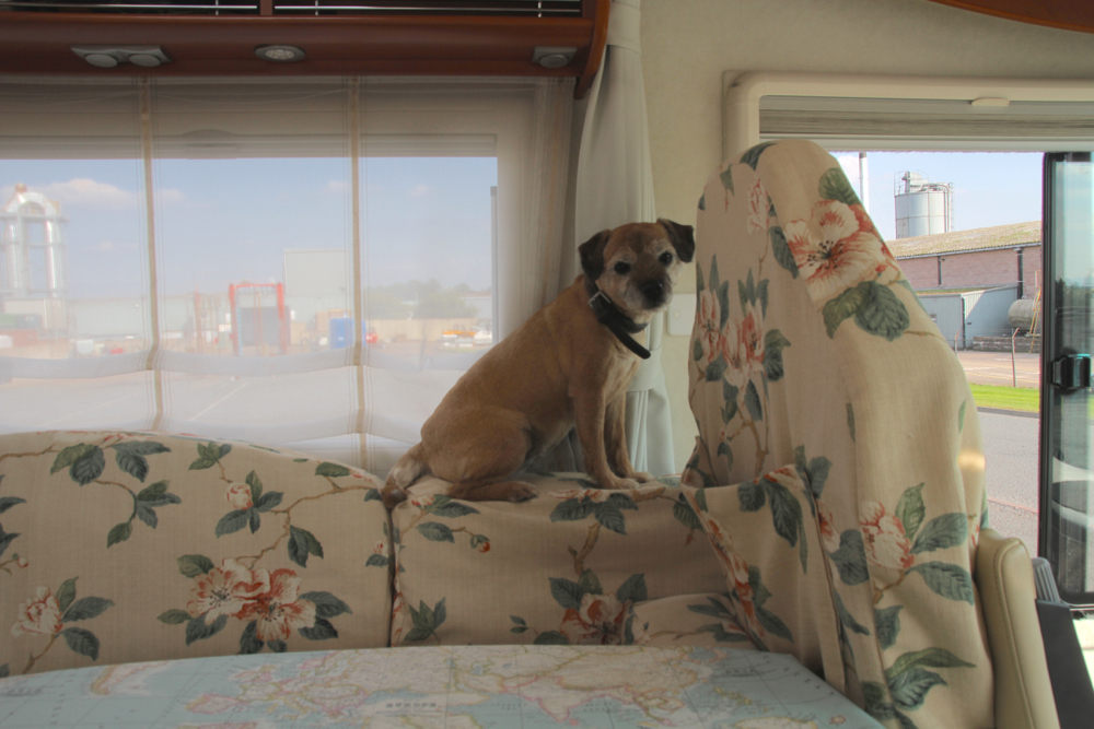 The downside to motor homing is that you are required by the Missus to hoover the house before you are allowed to set off. I was closely watched yesterday, while performing this chore, by Colin and Penny, aka the Kray twins, who knew something was up by the general frenetic packing and cleaning activity. If Colin is looking unusually somnolent, even for him, it is because he has just scoffed a box of biscuits for cheese, inadvisedly left unattended at Colin nose level. And he did pretty much eat the box, as well as it’s contents.