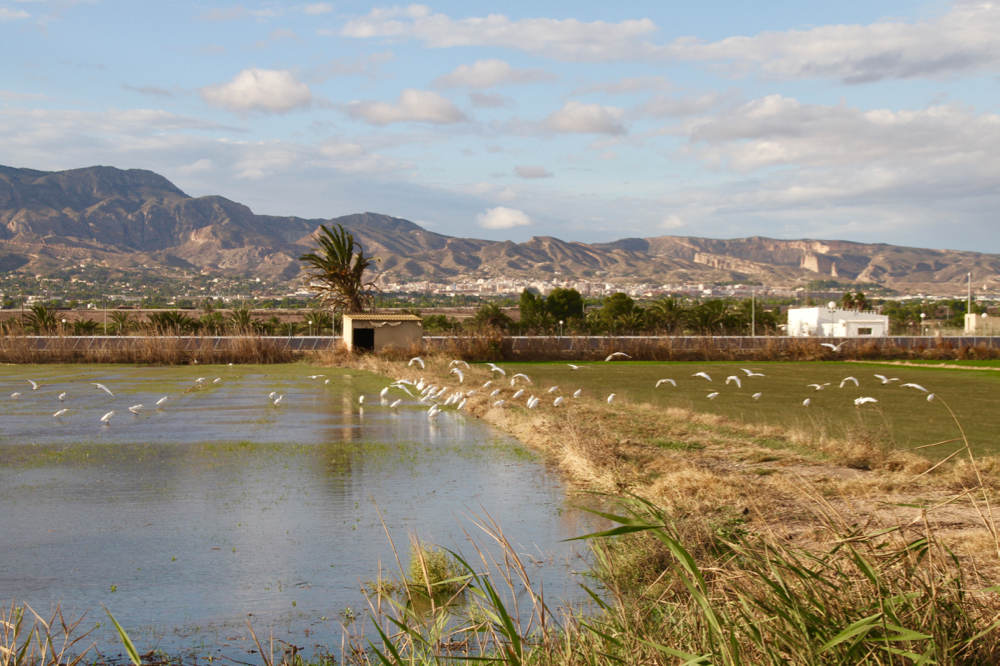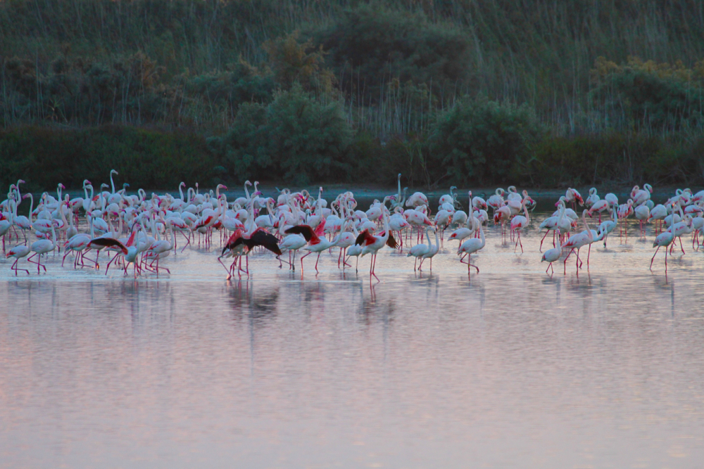 • Fair way…about 2.5 miles from middle of campsite to middle of nature reserve, flamingos may be on far side of reserve. Need to avoid midday if hot and take some water with you. Have a look on google maps…’Parque natural el Fondo’..Or…I think you could park in the park car park (thats more parks than you usually meet in one sentence) and walk in with Daisy?