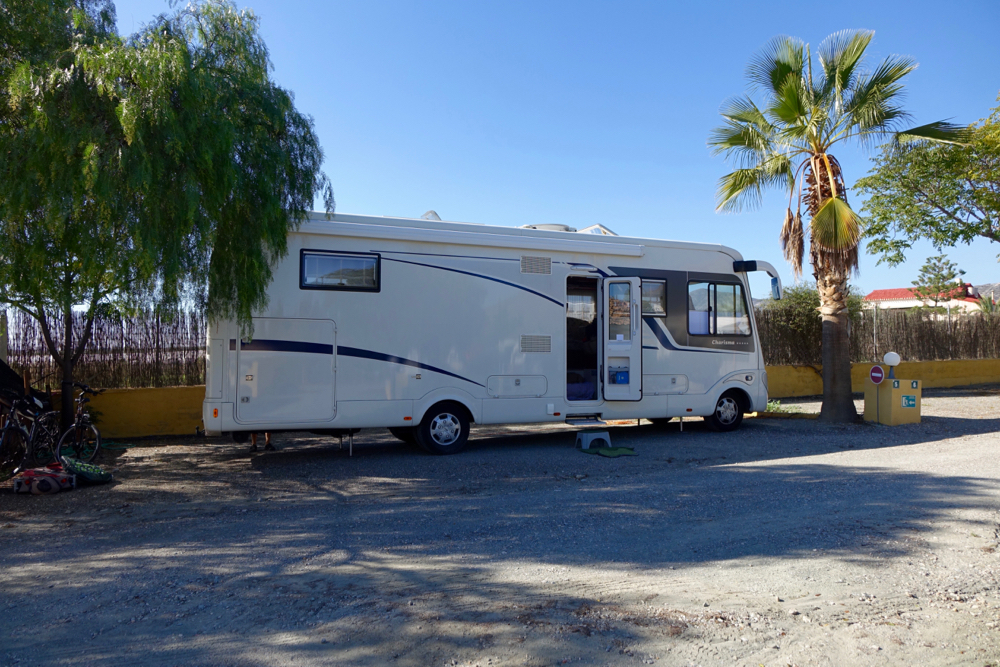After a few great weeks at Marjal we have moved on; Mavis was getting itchy wheels. We spent last night at La Torrecilla, a small site about 7 km outside Lorca, which is about 70 miles down the A7 from Marjal. Nia tucked Mavis nicely in to a small pitch by the reception.