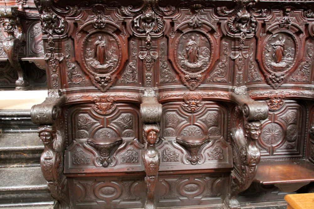 The seats have been carved in Antilles mahogany and feature scenes from the Bible and the lives of various Córdoban martyrs.