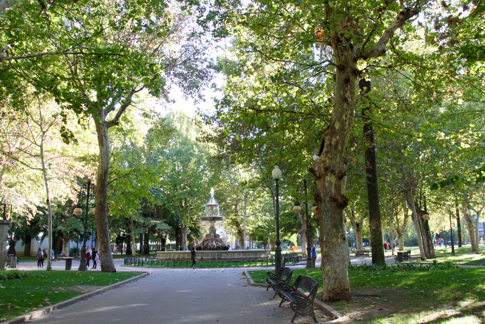 This is the pretty little Plaza Doblas, just beyond the gardens of the Merced.