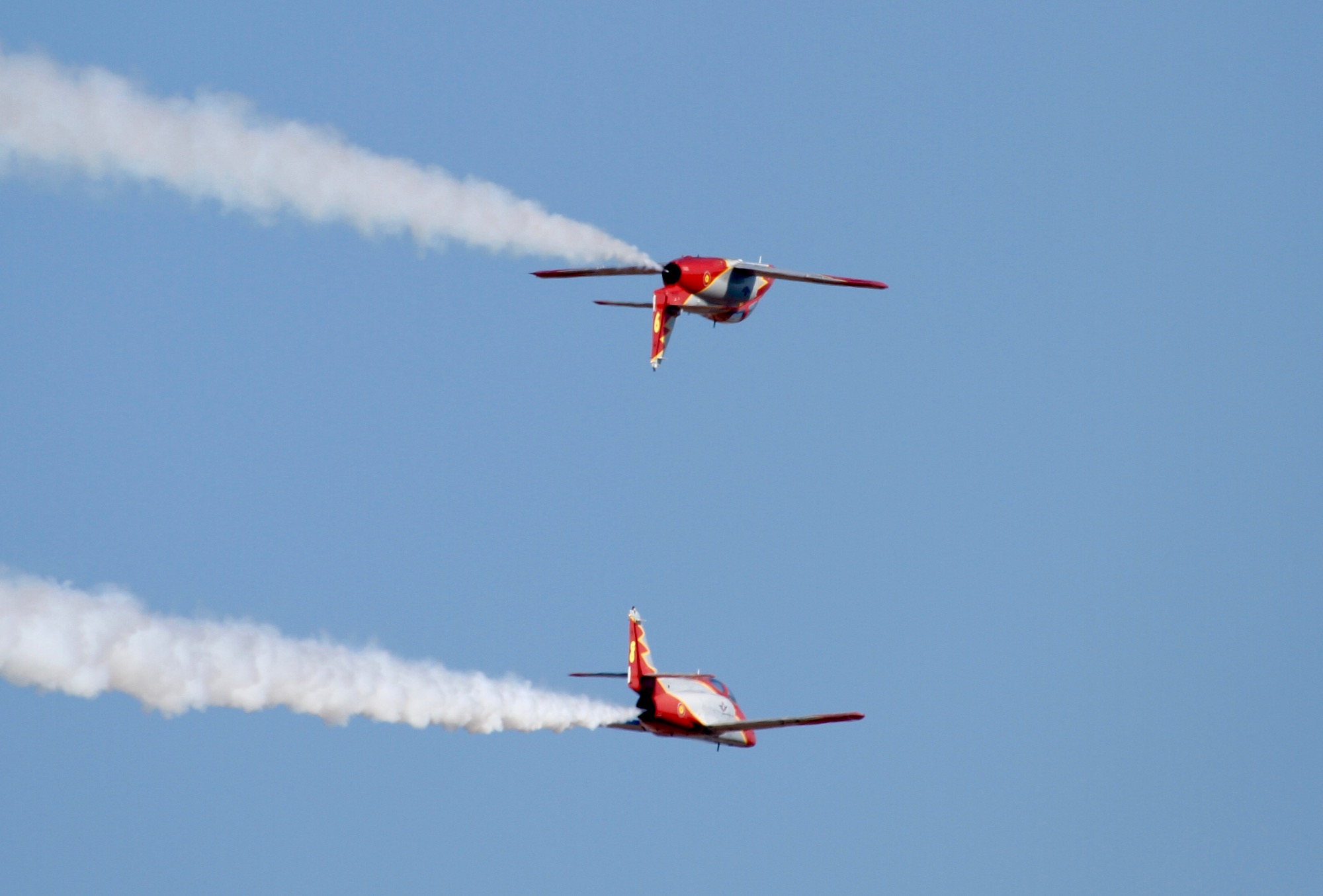 The campsite is close to San Javier/Murcia airport. This has about three commercial flights each day and is home to the Aiguilla Patrulla or Eagle Patrol…the Spanish air force air display team. Their equivalent of the Red Arrows. They fly their home designed C-101 training jets. On Friday we were treated to a practice air display.