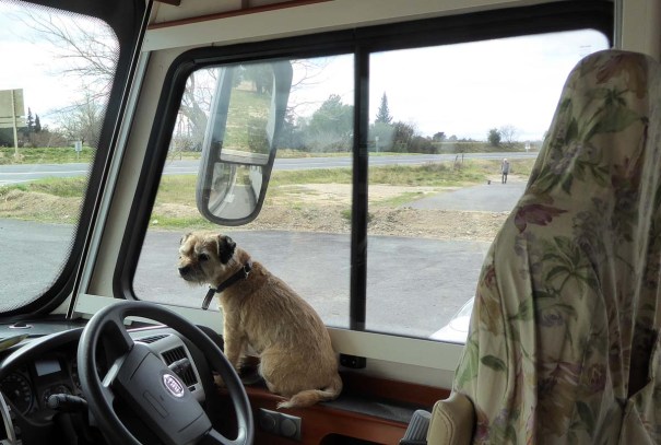 We spent the night at an aire in Ruynes en Margeride, a small village about 4 miles off the A75 high in the Auvergne. We are camped in solitary splendour. It is a good stop off, with acres of dog walking and a boulangerie (open on Sundays) a short walk away. There is water and electricity should you need it. It is not uncommon for the water to be turned off in the aires in the winter…there was none at Nonacourt or Les Bordes ( a small aire we stopped at yesterday to walk the dogs and have lunch).
